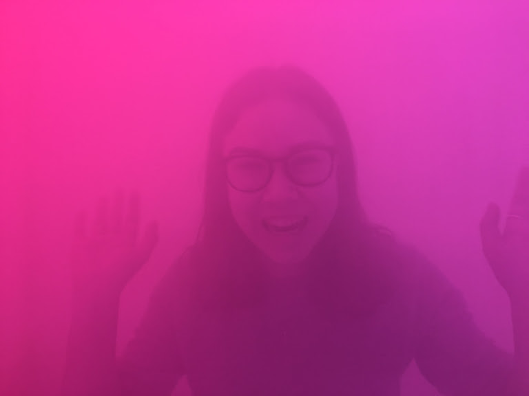 I went out to the Louisiana Museum last weekend with a friend on a rainy day. It was a 30 minute train ride into the Copenhagen suburbs, and then a short walk to the art museum and surrounding grounds. Their main exhibition right now is Ann Veronica Janssens’ “Hot Pink Turquoise,” which is on until May and features light as its main medium, through changing colors and reflections and its diffraction through water. We waited on line for her installation Red, Yellow, and Blue (2001), a closed room with white walls and no windows that was glowing with color from the outside. I expected to be underwhelmed, but the experience was in fact astounding. Janssens fills the room entirely in mist that holds the color thickly in space, and is so dense that you can’t see more than a foot in front of you. It felt like closing your eyes to find lurid color instead of darkness, like the blue that blends into fluorescent pink as you walk “forwards” into the absolute unknown. Lots of visual art aims to unsettle our sense of perception, but it often reads like a gimmick to me. From my startled perspective, this piece really sold it.