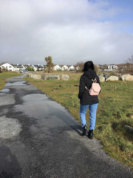 I caught the 350 bus again and took it northwards, passing through Doolin and much of the Burren landscape, with long sheets of flat grey cliffs and striated stone behind fields, and stretches where grey stones seemed birthed out of the mossy grass. I got off at Kinvara, a small seatown, and walked to the Dunguaire Castle, which is small and crumbling but still upright, and went around its overgrown perimeter. Kinvara has this coastline that wraps around the bay, opening to sailboats beyond the buoys, and it maintains a quiet on the outskirts. On the way back I saw a man thatching his thatched roof (a first!) and passed the rest of my time walking the mainstreet and sitting at a quiet bar. The town was smaller than I’d expected so I made the quick decision to take the 16:55 bus out. I took the bus to the end of the route up to Galway, where my friend, Whitney, met me at the bus station, and then walked me back, with a quick pit stop at Supermac’s for fries. It was like coming back to an alternative-universe home (we are roommates back at my college). She made me dinner and then we did a quick jog around the city center, and then a long sleep.