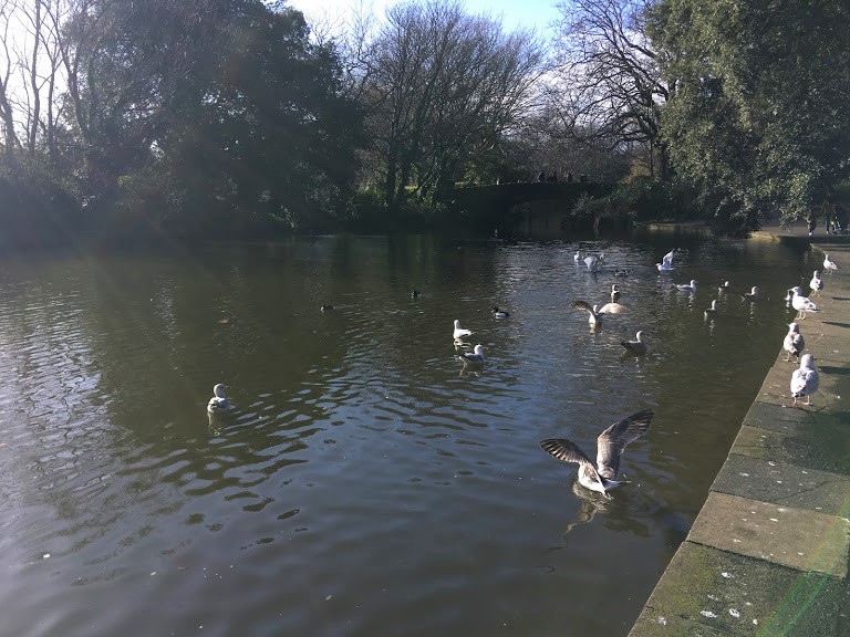The day was perfectly clear, and we toured the Christchurch Cathedral and its gothic interior arches and chambers for worship, and saw the heart of St. Lawrence in a stone casket. This is the church where Handel’s Messiah was first sung and where knights were often knighted, and in the back, they had on display the table where William Gladstone had plotted the destruction of the Irish church. We walked next around Stephen’s Green, with ducks and gulls flapping around the ponds, and then carried on to Grafton street and briefly to Trinity campus. We sampled a lot of food that day: my favorites were a cone of Murphy’s ice cream (I got sea salt and Kieran’s Cookies) and this dense hot chocolate at Ladurée. We also did Temple Bar that night, and found it a tad overrated.