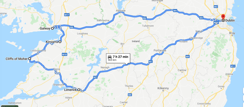 I had travel week one free for independent travel, and I spent it going around a loop in the center of Ireland. I had a few goals for the trip: I had wanted to do some travelling by myself, and love slow travel with scenic bus/train rides. I’ve also always wanted to see the Irish countryside, and I have a very good friend who is studying at the University of Galway, so this seemed like a perfect way to combine it all. I flew in to Dublin on Tuesday night and then traveled to Limerick and spent the night there on Wednesday. On Thursday, I took buses up the West coast of Ireland and made it to Galway, where I stayed and sightseed with my friend on Friday as well. On Saturday, my friend and I took a bus to Dublin and stayed for the weekend. It was exhilarating and exhausting and breathtaking and overwhelmingly full, in all senses of the word.